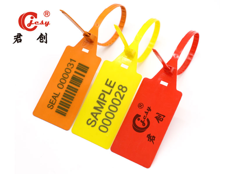 采用改性PP料注塑成型,锁芯里部放置弹簧钢片、再通过焊接而成。字为烫印或激光标刻、 公司标志或名称、流水编码、条形码等,一拉紧型、易施封、易安装,锁后可用钢丝剪移除。